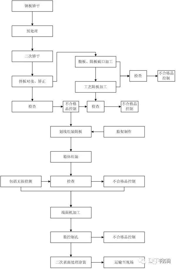 (1)嚴格遵循材料采購控制流程:制作單位提出材料采購計劃→鋼結構項目部復核→駐廠(chǎng)代表監督檢查實(shí)際到貨情況。