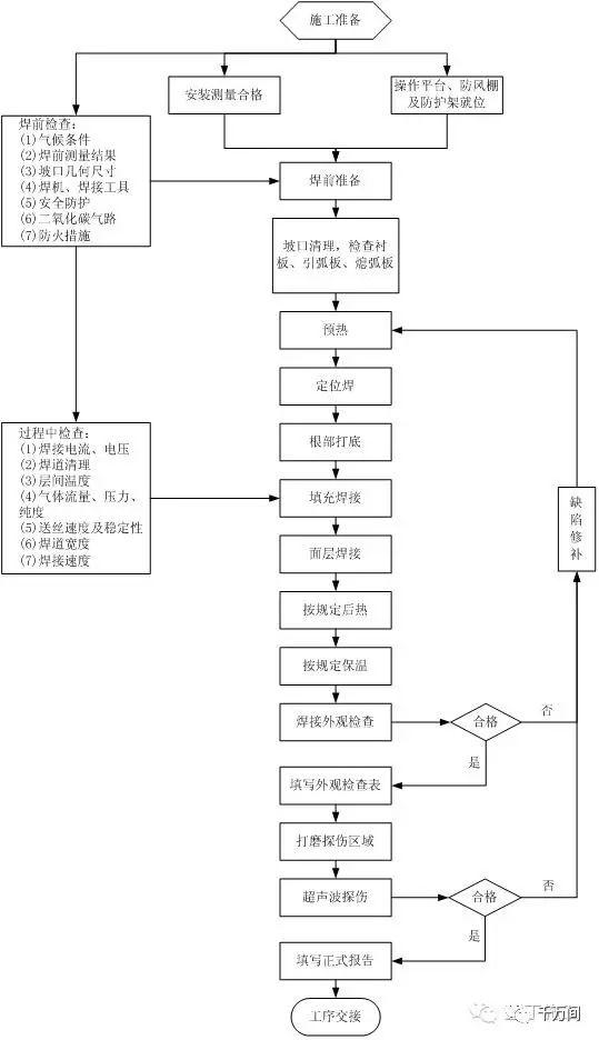 (5)焊縫的層間溫度應始終控制在120~150℃之間,要求焊接過(guò)程具有較強連續性,施焊過(guò)程中出現修理缺陷、清潔焊道所需的停焊情況造成層間溫度下降,則必須用加熱工具進(jìn)行加熱,直到達到規定值后能再進(jìn)行焊接。
