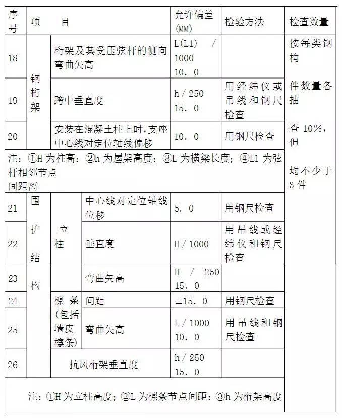 3.4.4 驗收:檁條間距按施工圖紙要求布置,其誤差值不大于±5.0㎜,檁條彎曲矢高不大于L/750且小于12.0㎜。用鋼尺和拉線(xiàn)檢查。