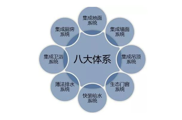 裝配式裝修在工程應用的技術(shù)體系包括集成地面系統、集成墻面系統、集成吊頂系統、生態(tài)門(mén)窗系統、快裝給水系統、薄法排水系統、集成衛浴系統、集成廚房系統。