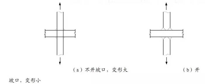 圖3:T形接頭板厚較大時(shí)采用開(kāi)坡口角對接焊縫
