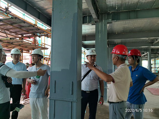 考察團主要參觀(guān)了主體結構已經(jīng)施工的21#-22#樓,提出了鋼結構主體的安裝進(jìn)度、鋼筋桁架樓承板與普通現澆板性?xún)r(jià)比、主體垂直度、柱芯灌注混凝土、防腐防火等問(wèn)題,我司方總針對這些問(wèn)題分別做了詳細講解。