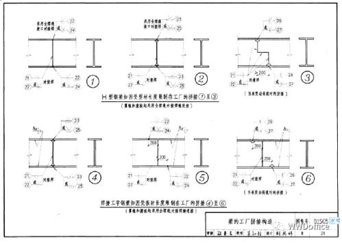 3、梁上附件不允許焊接在拼縫位置,要求錯縫不應小于100mm;如滿(mǎn)足不了,則在焊接 附件前要對主件拼縫進(jìn)行NDE檢查。4、梁長(cháng)度不大于15m,拼縫只允許在梁兩端1/3處且只允許各有1條;梁長(cháng)度在15m~35m, 翼緣板與腹板允許各有三條拼縫,但絕對不允許在梁中間及中間左右各1m范圍內有拼縫。