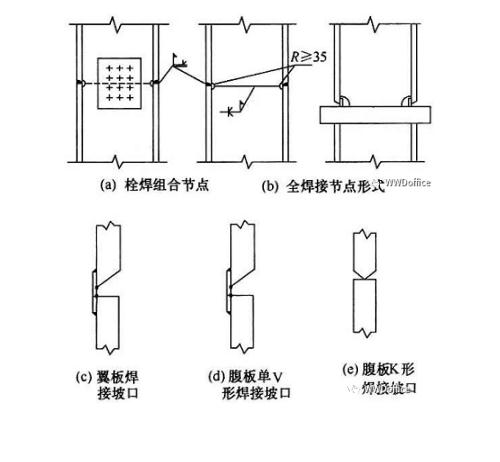 4框架柱與梁剛性連接時(shí),應采用下列連接節點(diǎn)形式: