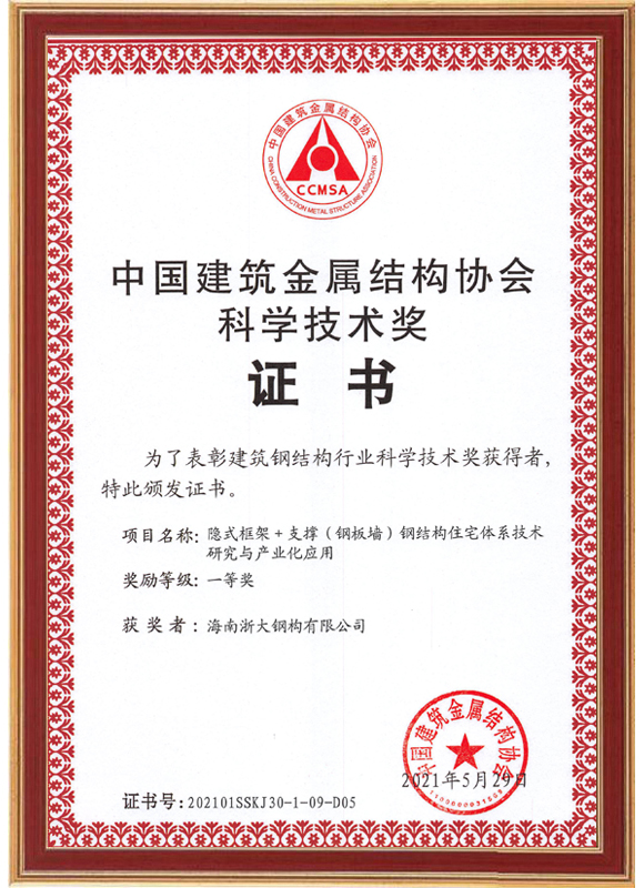 中國建筑金屬結構協(xié)會(huì )科學(xué)技術(shù)獎