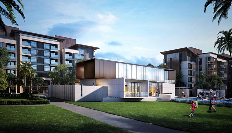 一期規劃用地面積135634.2m2,總建筑面積195259.98m2,計容積率建筑面積為142397㎡,其中度假式住宅139562.54㎡,商業(yè)986.8㎡,公建配套1848㎡。建筑地上7層,局部地下1層。